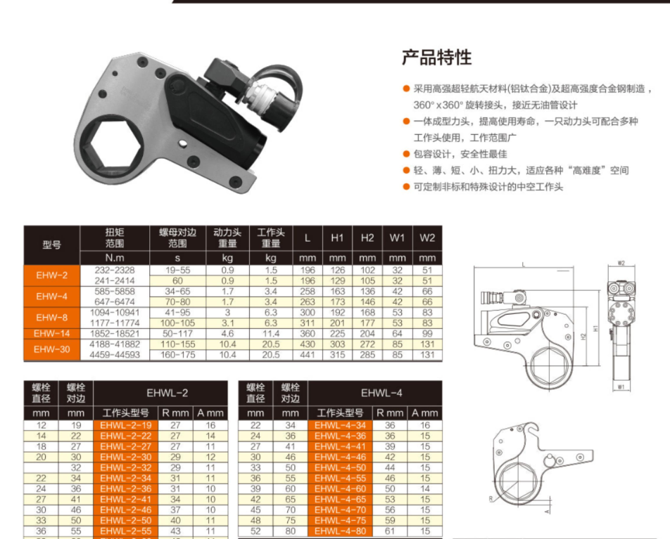 1. 采用高強超輕航天材料(鋁鈦合金)及超高強度合金鋼制造,360°×360°旋轉(zhuǎn)接頭,接近無油管設(shè)計