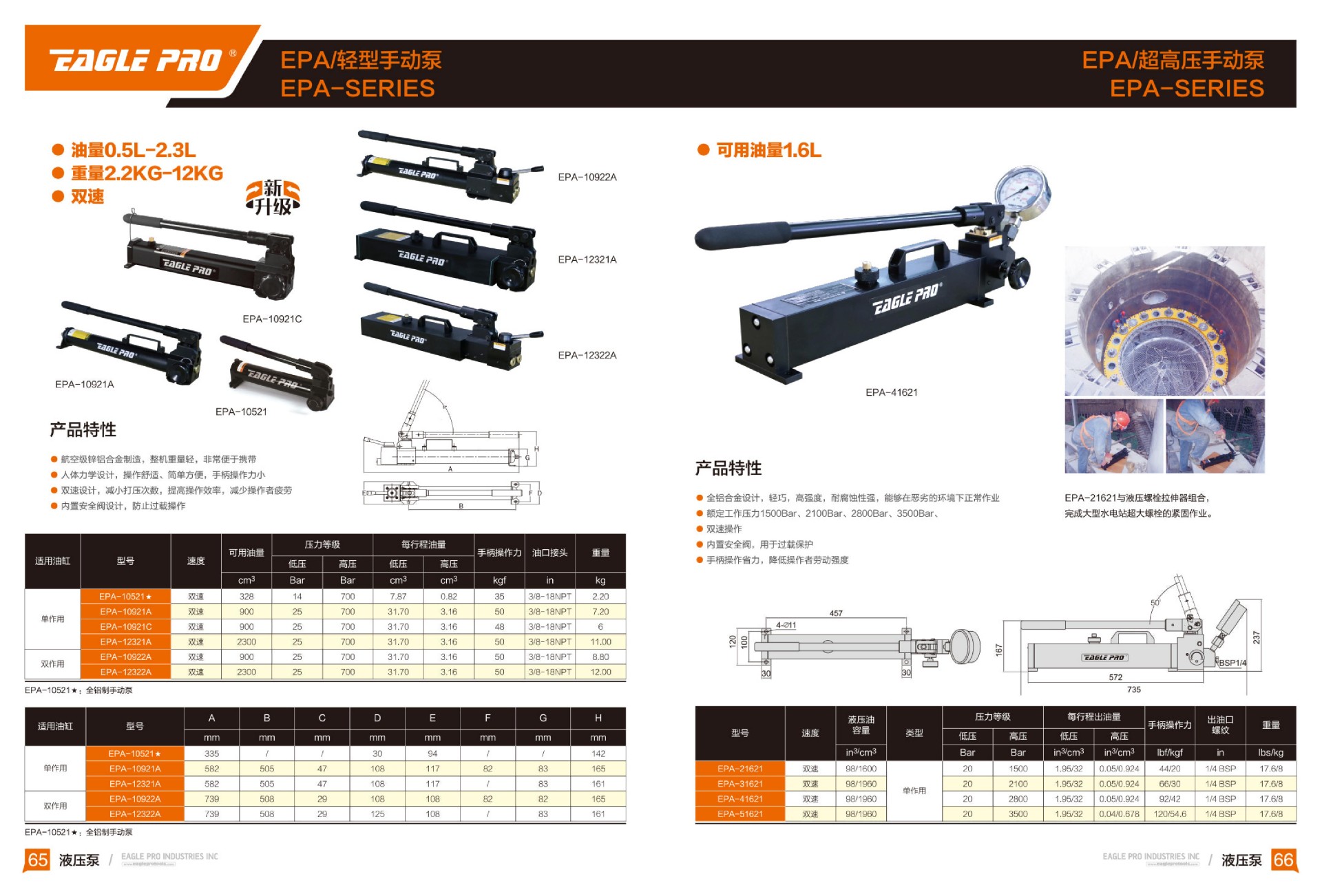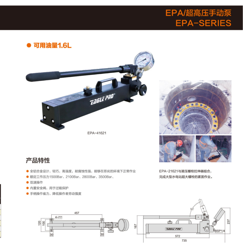 內(nèi)置安全閥,用于過載保護(hù)手柄操作省力,降低操作者勞動強(qiáng)度