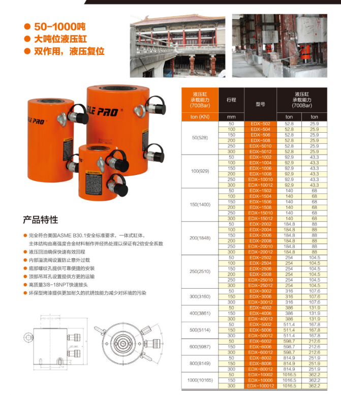 1. 完全符合美國ASME B30.1安全標(biāo)準(zhǔn)要求,一體式缸體,主體結(jié)構(gòu)由高強(qiáng)度合金材料制作并經(jīng)熱處理以保證有2倍安全系數(shù)